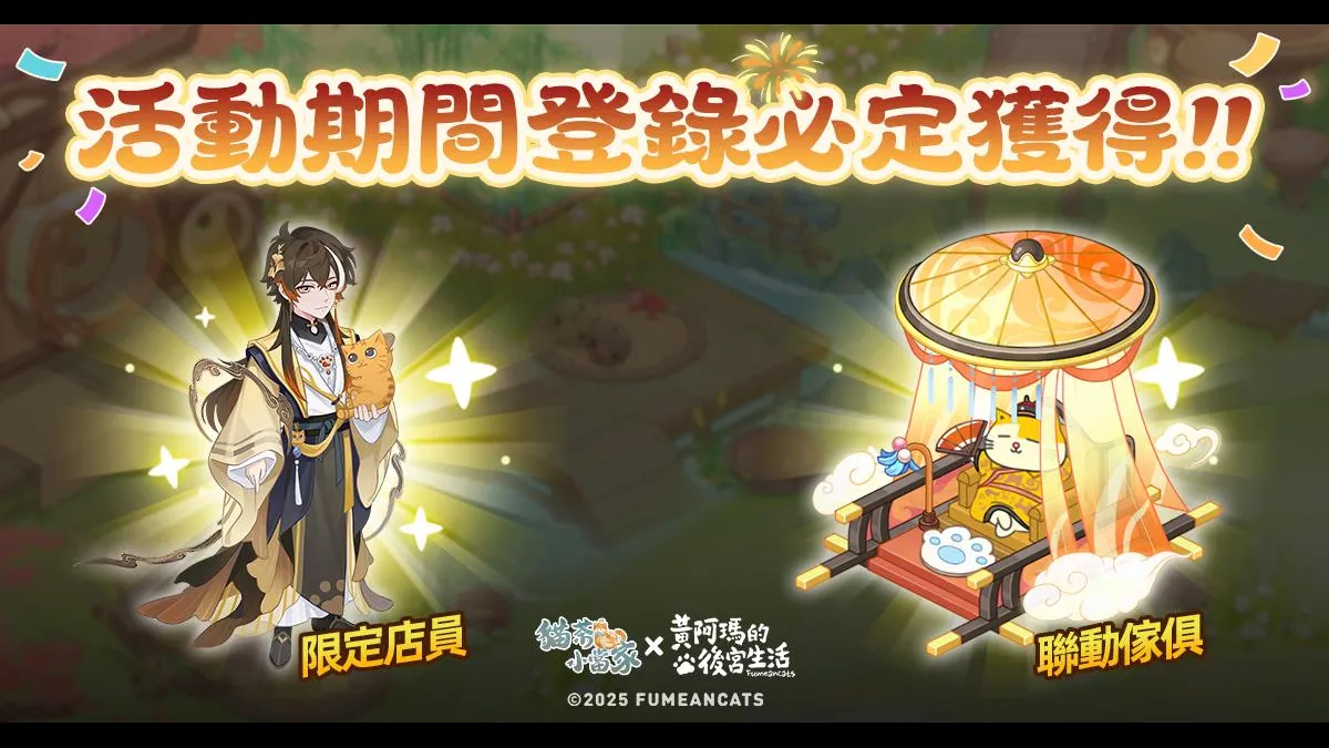 遊戲與知名的貓咪IP「黃阿瑪的後宮生活」獨家限時合作,網紅貓咪黃阿瑪、三腳等大家熟悉的貓咪都會化身遊戲中的虛擬小貓,讓玩家可以擼它們和進行玩耍互動,滿足粉絲的夢想。除此之外,還會有聯動的家具裝飾可以讓玩家裝飾貓屋或茶館,想打造「黃阿瑪的後宮生活」主題館也沒問題,合作還有聯動活動可以獲得對應的聯動獎勵,有專屬的活動介面、任務和故事劇情,能讓粉絲能更了解「黃阿瑪的後宮生活」的後宮成員及個性。