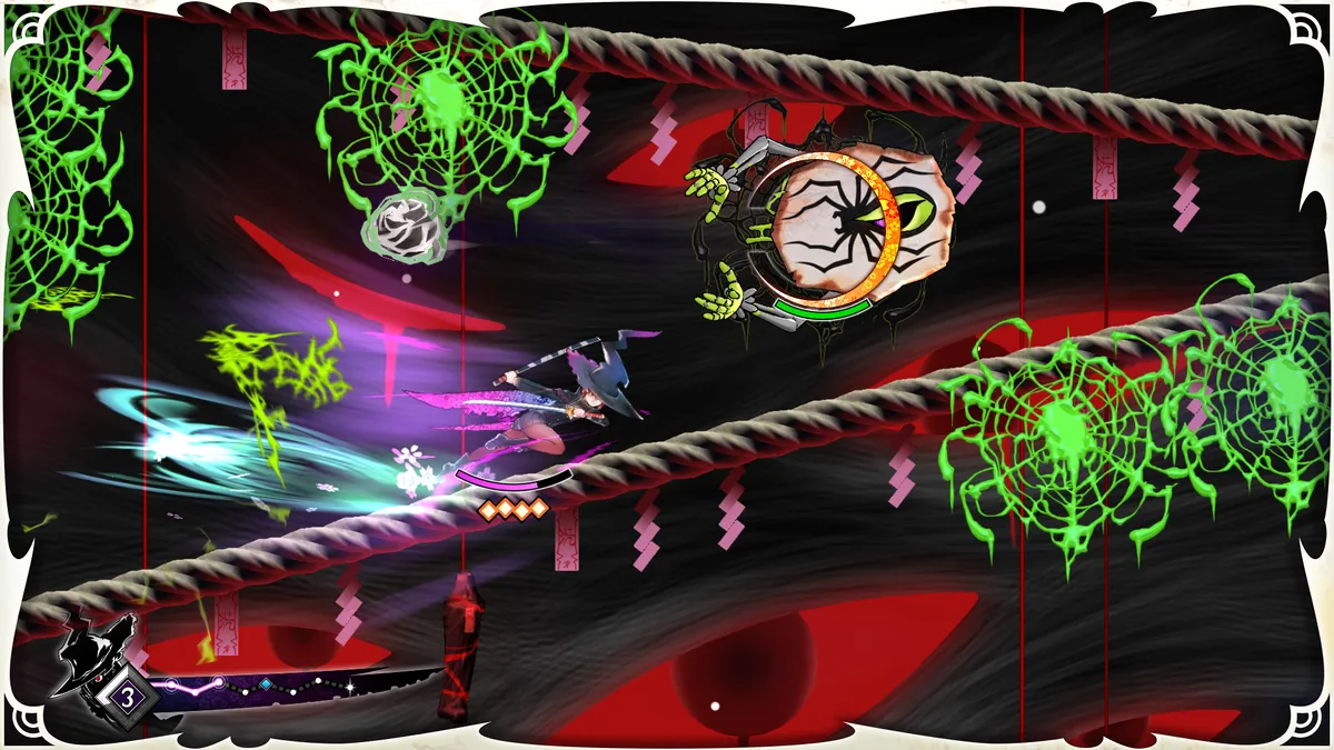 玩家要操控白羽,活用高速移動(斬擊)攻擊「剎那」來攻略關卡與敵人。