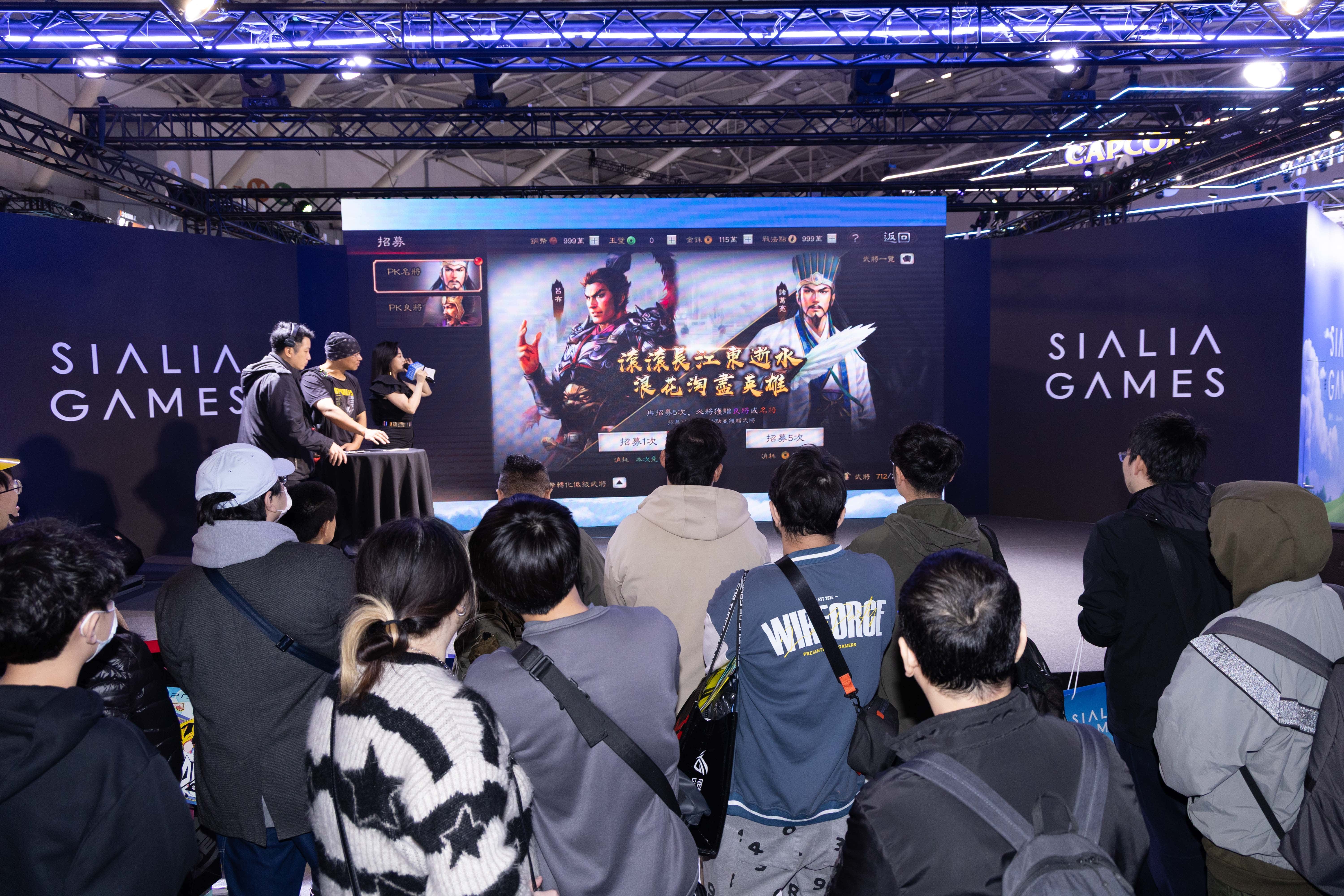 孫協志現場震撼演繹了《三國志・戰略版》經典熱門主題曲〈戰記〉,熟悉的旋律瞬間點燃全場玩家的鬥志,臺下應援聲不絕於耳。演唱完畢後,協志哥更親自走訪攤位體驗各項活動,不僅在「SialiaGames珍藏藝廊」駐足良久,更參與「策略考驗」與幸運玩家近距離互動。並與人氣Coser喵少Athena、張語嵐合影留念,更引來無數玩家瘋狂搶拍,將今日的展場氣氛推向最高峰。