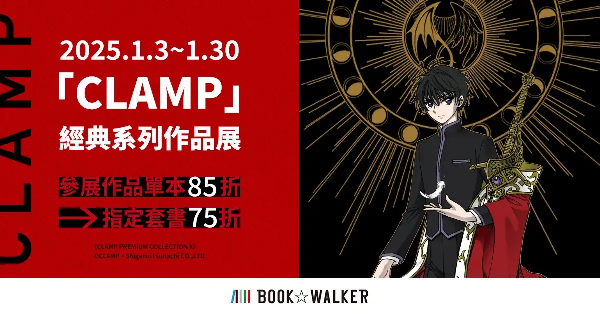 台灣角川於1月3日至1月30日推出日本最強少女漫畫團體「CLAMP」經典系列作品展,活動期間內參展作品享有單本85折、指定套書75折限時優惠!包括出道成名作《聖傳 -RG VEDA- [完全版]》、以日本東京為背景的現代都市奇幻之作《東京BABYLON [完全版]》、為了拯救哭泣的女性而奮鬥的《CLAMP學園偵探團[完全版]》,以及歡樂熱鬧的怪盜日常與戀情交織的《怪盜千面人!! [完全版]》等作品都有折扣!如果你曾沉浸在「CLAMP」所創作的夢幻世界中,那就把握折扣時間、把這些經典作品一口氣收藏起來吧!