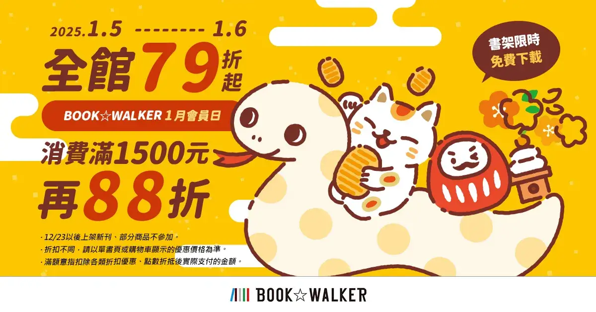 2025/01/05  – 2025/01/06 BOOK☆WALKER每月5日會員日 最低7折起