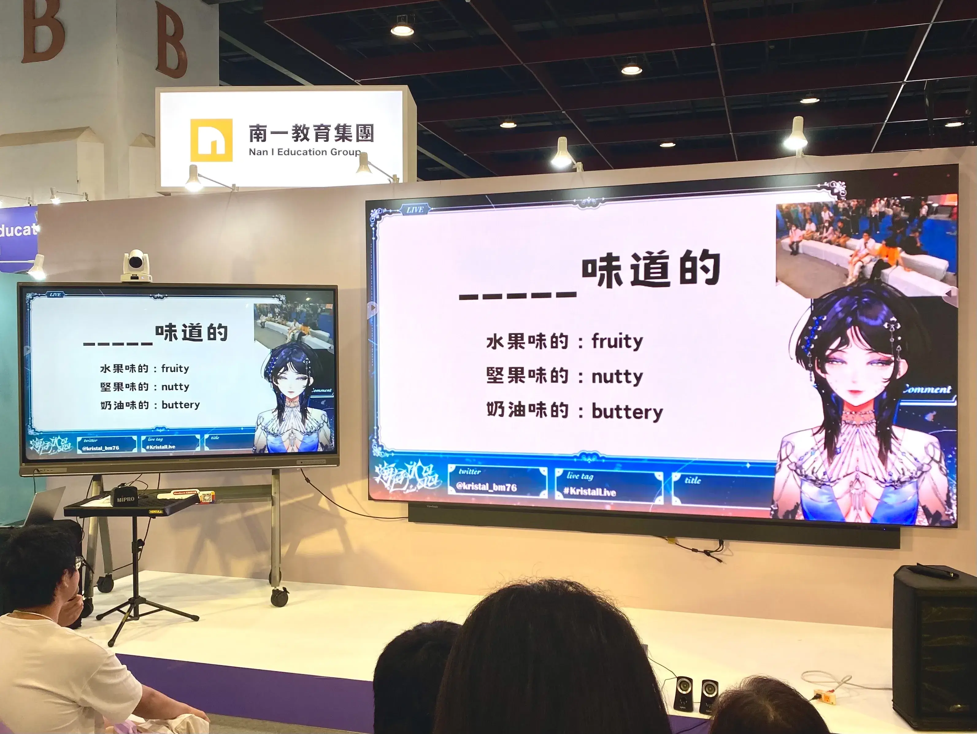 在甫結束的2024教育科技展中,亞彌奈與海色水晶也成為該活動史上首批進入展覽的VTuber,這也是她們正式出道以來的公開初舞台。在其中一場的直播中,海色水晶與現場的觀眾們玩起了英語版的「你吃我猜」遊戲,在輕鬆簡單的互動中潛移默化加入英語學習,讓學習一點都不無聊;除此之外,亞彌奈更利用「Minecraft麥塊」遊戲本身的空間與色彩特性跟大家玩解謎,吸引了許多觀眾駐足欣賞。