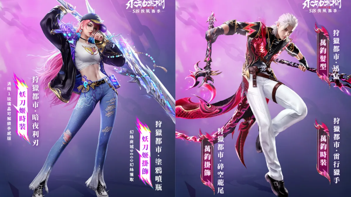 解鎖新賽季通行證可解鎖妖刀姬、萬鈞全新【狩獵都市】系列外觀