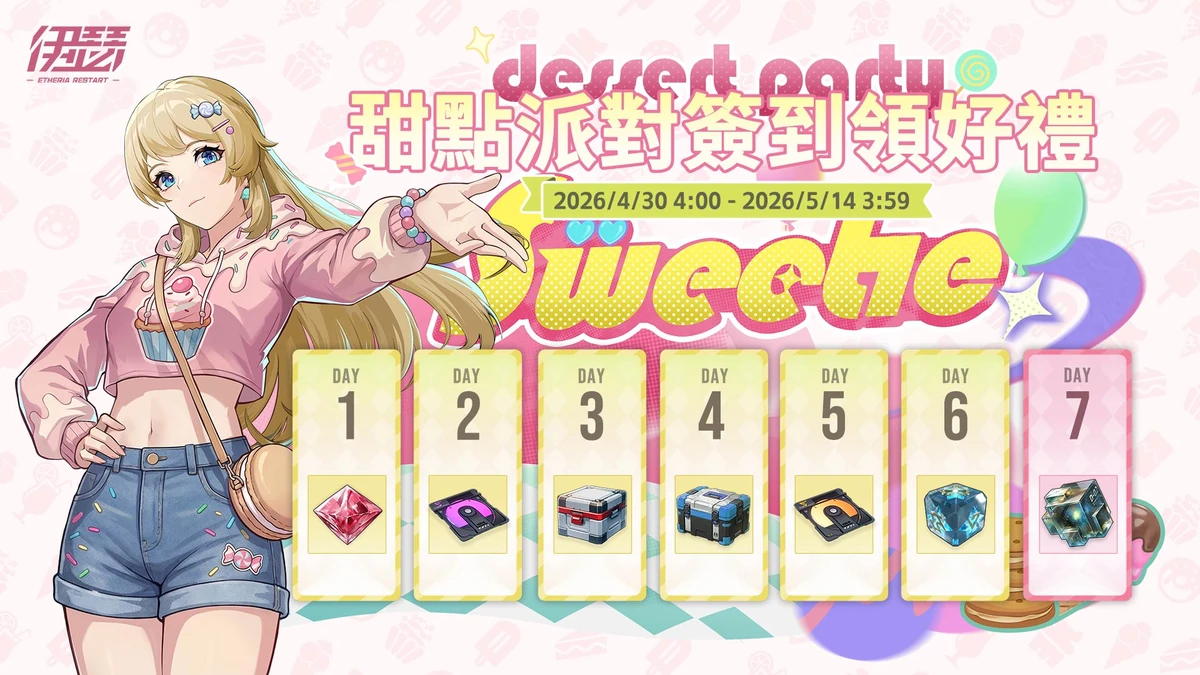 活動期間,麥琪也特別為超鏈者們準備了一場甜蜜滿滿的夏日甜點派對。只要每天記得來簽到報到,就能陸續領取「塑型幻方」、「改異骰子」、「模組自選箱」等豐富養成資源,讓這些精心準備的甜點禮物,為你的冒險旅程增添一點輕鬆與驚喜,陪伴超鏈者們一同享受這場專屬盛夏的甜蜜時光。