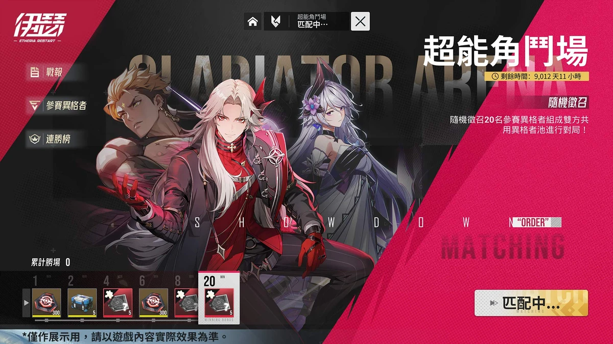 超鏈者協會同步推出全新玩法「超能角鬥場」,在此玩法中,超鏈者需要藉由系統預先配置養成的20名異格者,進行充滿變數的【隨機徵召】模式對戰,考驗超鏈者的臨場判斷與策略運用。活動期間內,透過累積勝場即可獲得「特型圖紙殘片」、「元件組裝材料」、「決勝星輝」等多項實用獎勵,讓每一場對決都兼具挑戰性與成長回報。