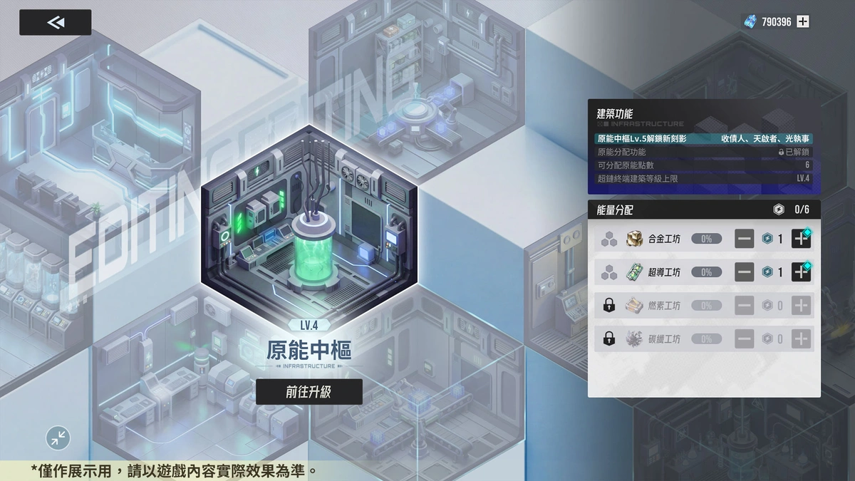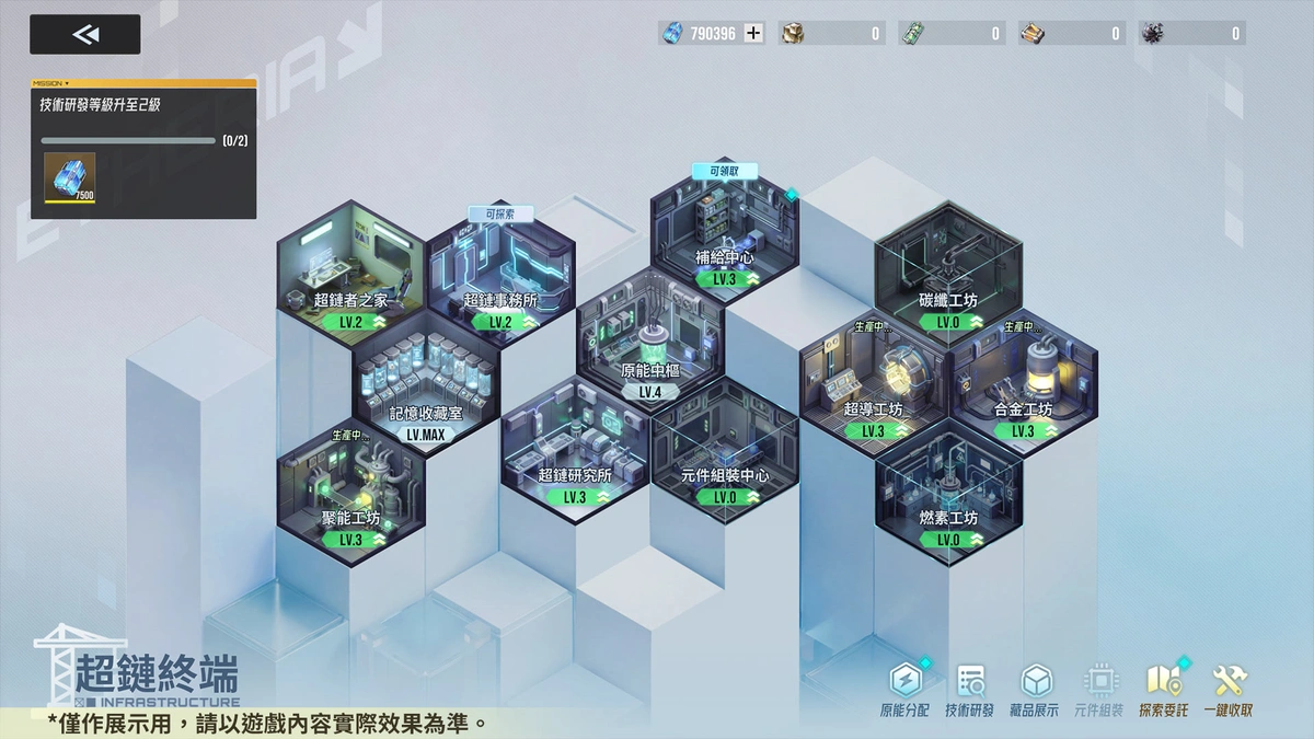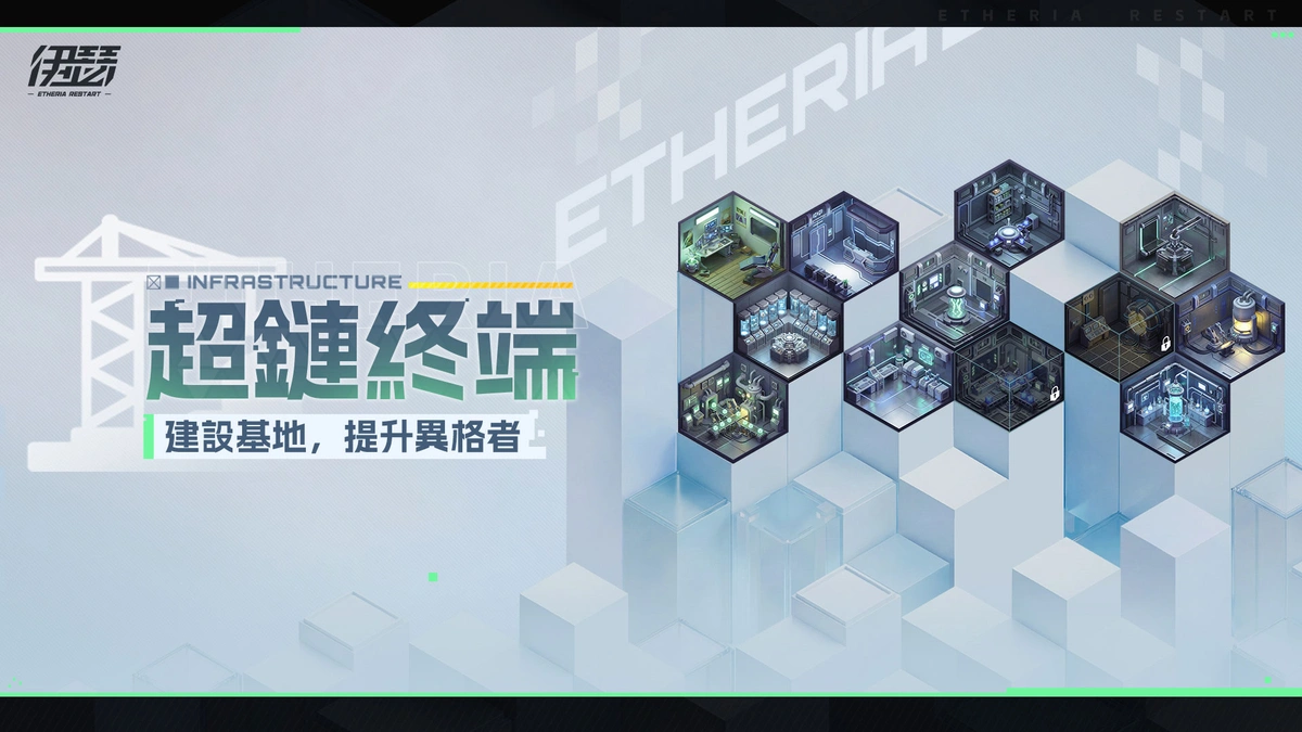 在基地中,超鏈者可建設各類工坊,獲取異格者成長資源及刻影養成素材,用於提升角色與刻影的戰力。玩家還可派遣異格者完成各類任務,獲得藏品、完美晶格碎片等豐富資源,透過工坊布局與任務安排,自由規劃異格者養成與隊伍策略。
