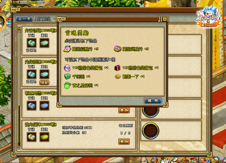 圖010 挑戰140級以上關卡的首度通關獎勵,都有可能獲得【青之星宿袋】,有機會獲得任一種武將專屬裝備!