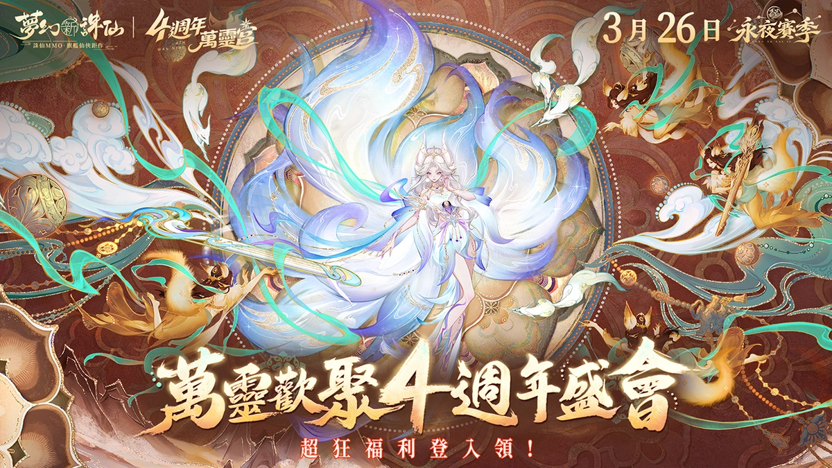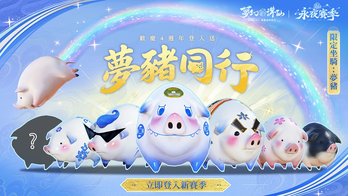 《夢幻新誅仙》手遊於今(3月26日)迎來四週年盛典,豐富福利及網頁活動正式上線。為歡慶《夢幻新誅仙》上市四週年,即日起玩家完成網頁登錄即可獲得深夜空襲禮包;登入遊戲還加碼送出超萌坐騎-夢豬。營運團隊更宣佈2026年全新永夜賽季熱血開打,兩派之間的對抗一觸即發!
