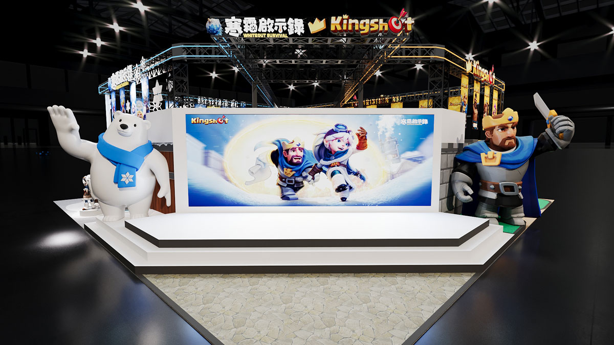 超巨打卡點一秒吸睛!主舞台兩側的4米高毛茸茸《寒霜啟示錄》大白熊與超威武《Kingshot》國王雕像,呈現最具氣勢的展出,繼去年大受好評的 AR 獵熊玩法,今年主舞台全面升級,玩家只要進入範圍即會收到《寒霜啟示錄》大白熊拋雪球打招呼,也有機會被《Kingshot》國王設為標靶、shot中紅心!