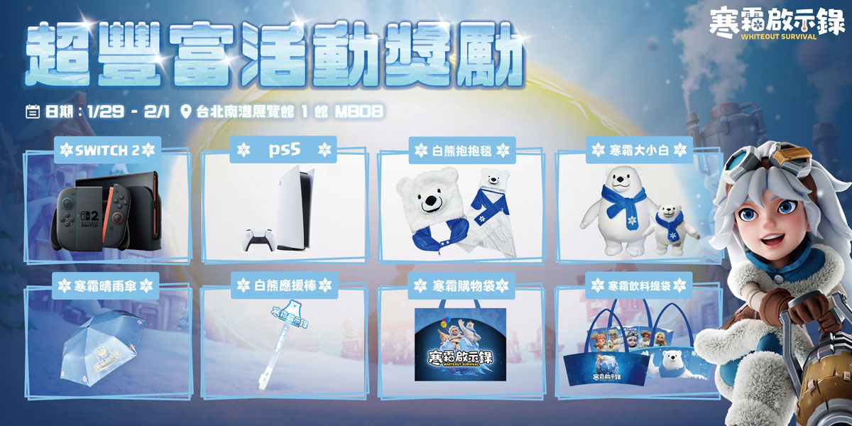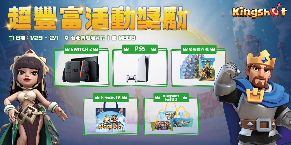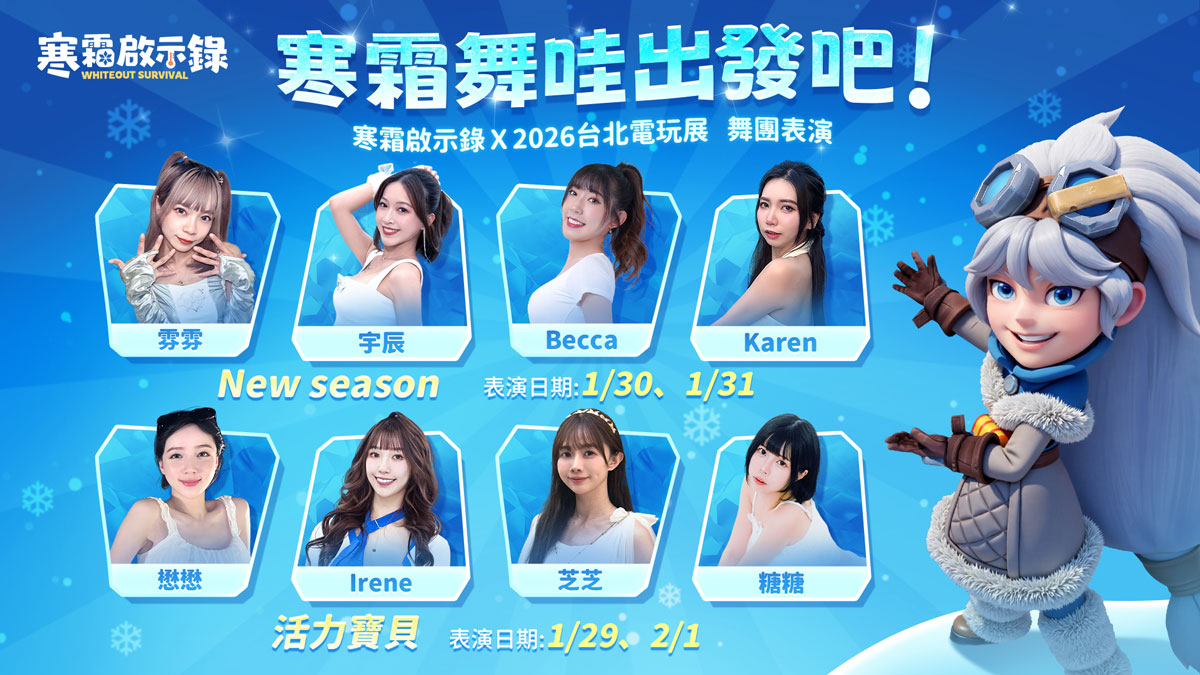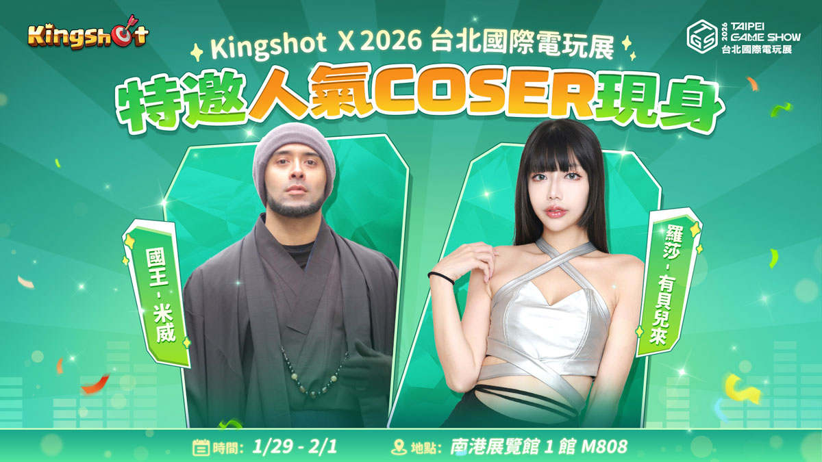 展覽期間,還有青春無敵舞團「New Seasons」與活力四射的「活力寶貝」超洗腦舞曲表演,以及 4名Coser 分別扮演《寒霜啟示錄》茉莉、布蘭琪,與《Kingshot》國王、羅莎等待與玩家見面。誠摯邀請所有玩家蒞臨攤位,一起享受現場活動與豐富好禮!