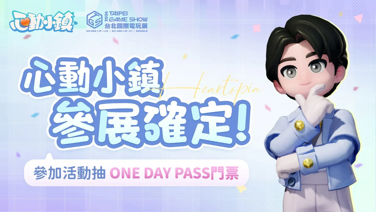 《心動小鎮》正式宣佈參加今年2026台北國際電玩展(1/29 ~ 2/1),為了回饋大家的支持,官方粉絲團特別加開福利活動,只要動動手指按讚並分享,就有機會免費獲得「電玩展一日參觀券」,親臨現場感受小鎮的魅力!參與暖心的「心動寄語」明信片留言活動,不但有機會與電玩展現場的發展家成為好友,還有機會將限量週邊帶回家收藏。想知道更多門票抽獎詳情與情報嗎?請務必關注官方粉絲團,我們在南港展覽館不見不散!