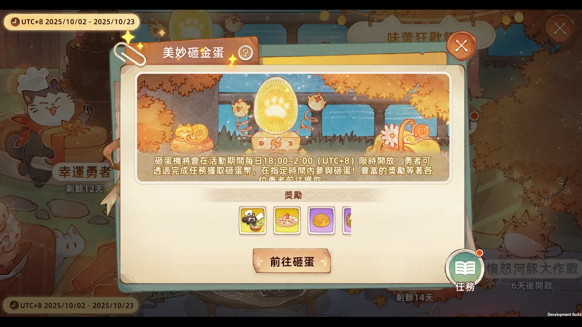 【美妙砸金蛋】活動同步開啟,勇者消耗砸蛋幣進行砸蛋,可免費獲取「漢堡沙發」、「珍珠奶茶溫泉」等限定美食主題家具,以及「毛球大廚」背飾、秘器之心寶箱、福袋禮券等驚喜好禮。