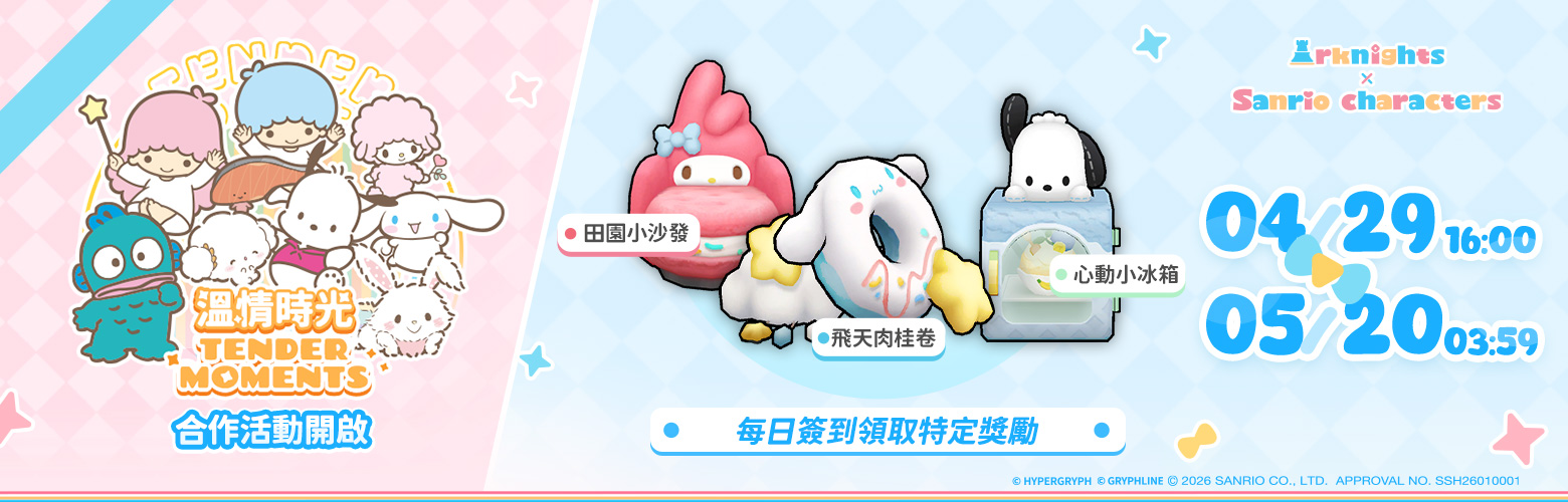 由鷹角網絡出品的新型態戰術攻防RPG《明日方舟》今日正式宣布將再度攜手『三麗鷗家族』展開聯動合作。遊戲內將於4月29日至5月20日期間推出「溫情時光」主題活動,活動期間玩家完成簽到即可獲得限定傢俱等專屬獎勵。