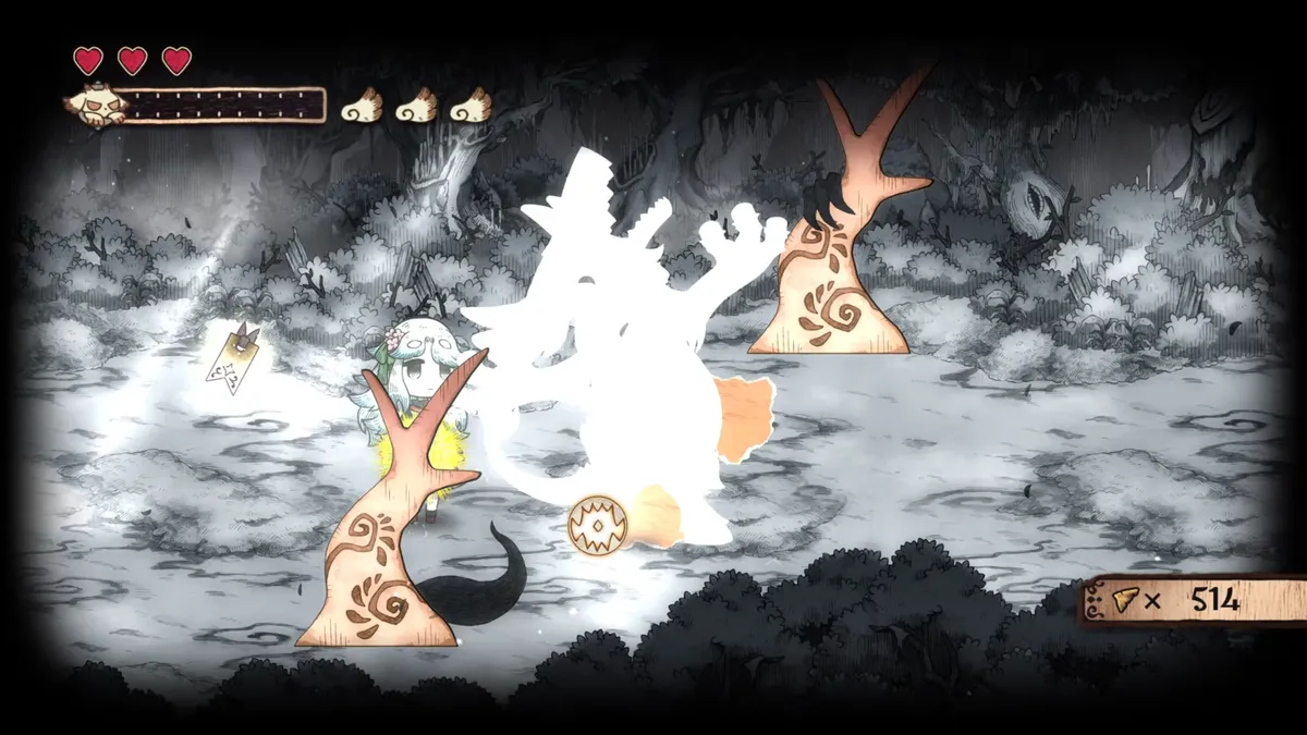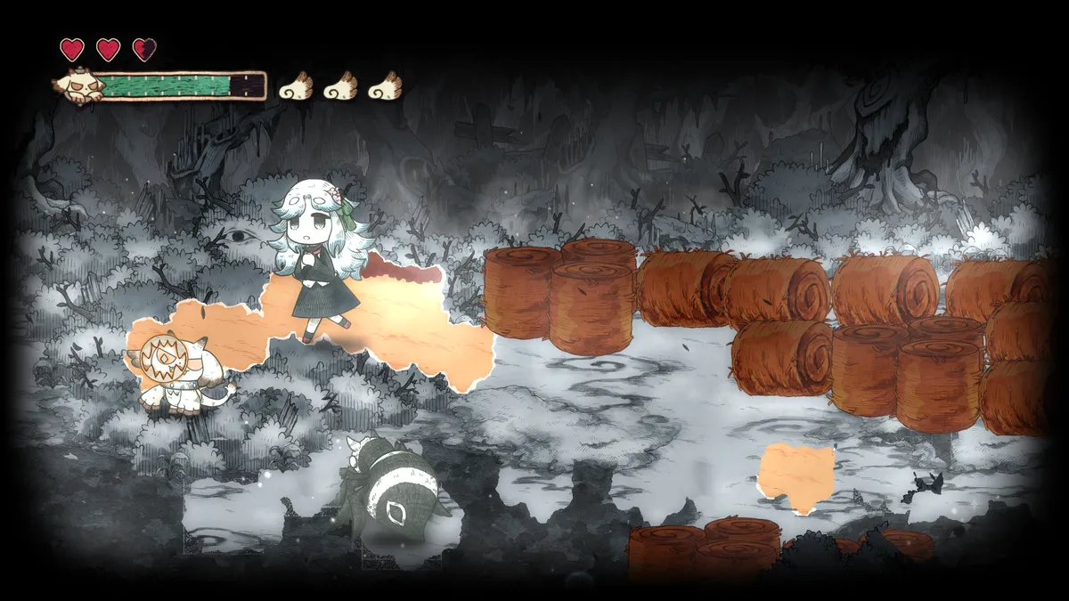 隨著在繪本中的世界前進,梅爾將逐漸恢復力量,並獲得新的能力。梅爾的新能力「黏貼」可以將吃下的東 西砸向遠方物體,既能進行遠距離攻擊,也能修復擊中的目標。