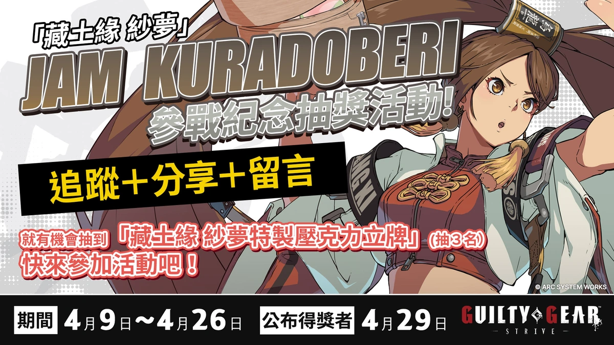 亞克系統亞洲(ARC SYSTEM WORKS ASIA)宣布,現正於PlayStation®4、PlayStation®5、Steam®、Xbox Series X|S、Xbox One、Windows平臺熱銷中的 2.5D 對戰格鬥遊戲《聖騎士之戰 -奮戰-》(GUILTY GEAR -STRIVE-)全新可遊玩角色「藏土緣 紗夢」已於4月9日(四)推出,同時也宣布,更新至最新版本後即可體驗免費大型更新 Ver. 2.00,並公開了詳細內容。