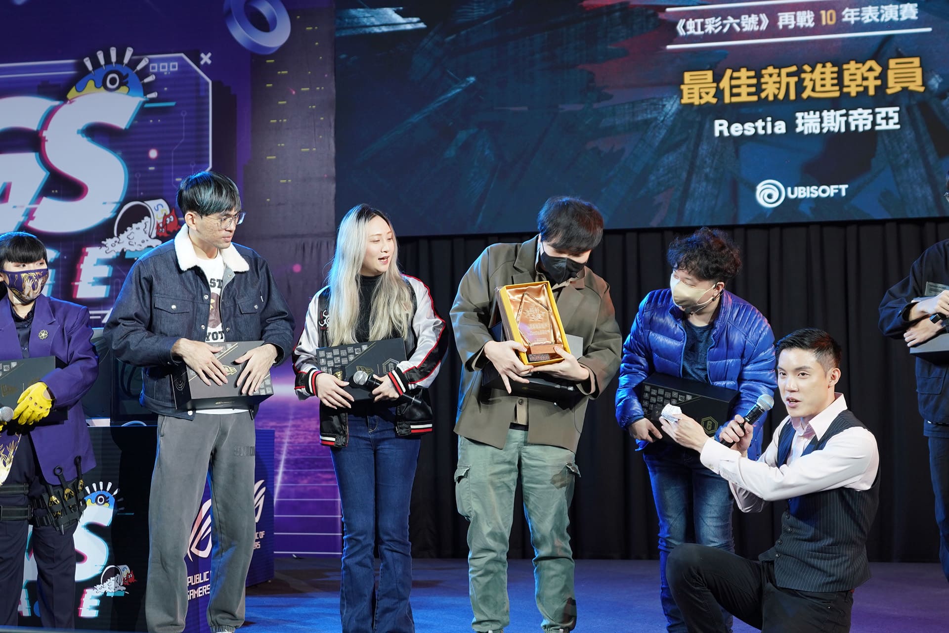 本次邀請賽中除了玩家熟悉的老面孔外,也首次邀請到首次接觸這款遊戲的「新進幹員」Restia 瑞斯帝亞,過去比較擅長單兵作戰的他在本次表演賽中體驗了《虹彩六號》著重團隊合作、地圖攻防的特色,在遊戲已經上市 10 個年頭後來體驗這款已累積豐富幹員角色與地圖的作品。活動最後 Ubisoft 官方也頒發最後一項「十週年特別獎項」並以實際數據統計揭露過去 10 年在 Twitch 開台時數最高的實況主,感謝 10 年來無數實況主的高度投入,包括像是老皮、狂暴小建、龜狗、鳥屎、阿森、杏仁咪嚕、殺梗等人都有單一年度開台超過 100 小時的超高紀錄,最終頒發獎牌給兩位《虹彩六號》總開台時數累積破 1,000 小時的實況主劉小魚與 Flash。