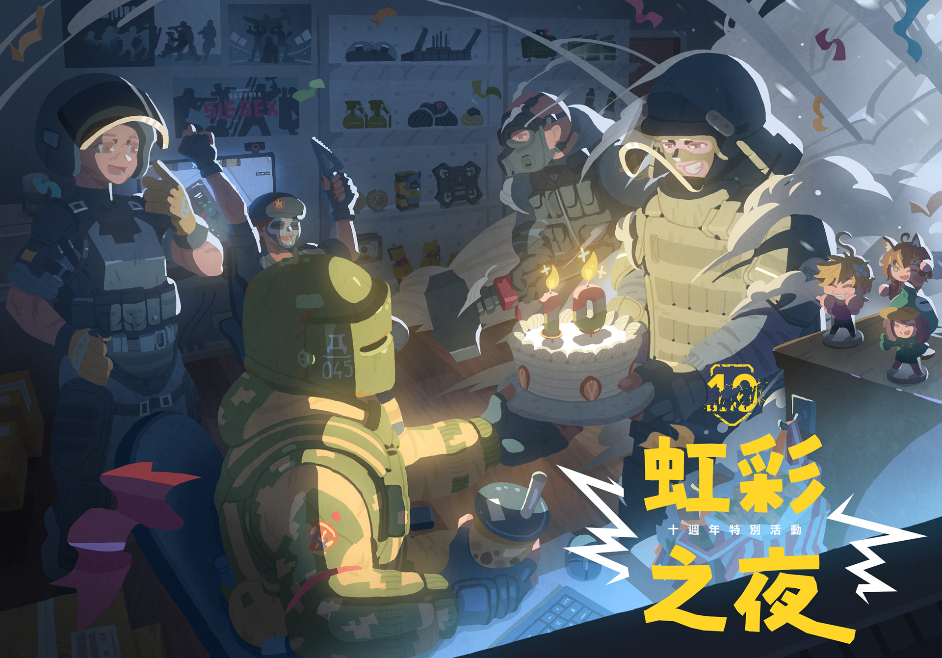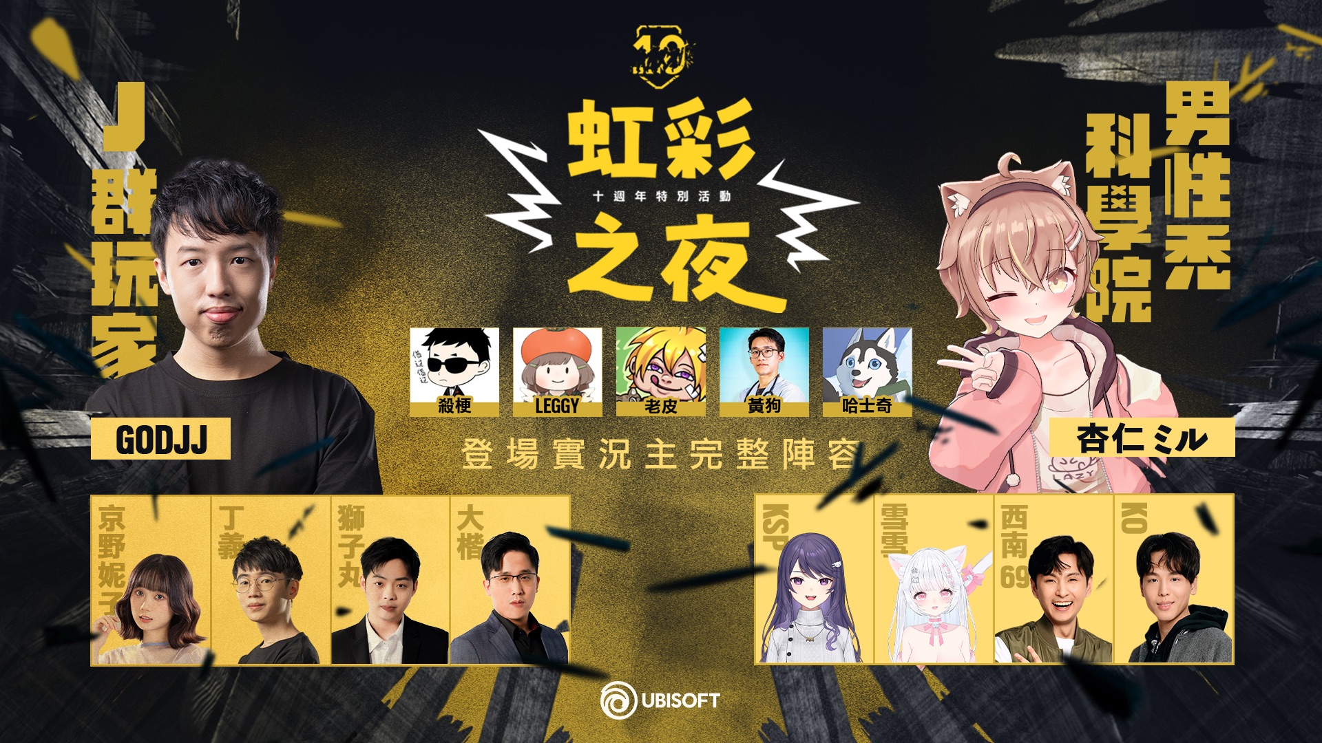 本週四登場的「虹彩之夜」官方直播節目上,將帶領玩家重溫遊戲上市 10 年的精彩時光,同時舉辦台灣電競隊伍表演賽、「教官特訓」實況主表演賽以及「鬼牌亂鬥」全明星表演賽,匯聚超過 15 名知名實況主與 YouTuber 重新聚首,與遊戲一同歡慶 10 歲生日。