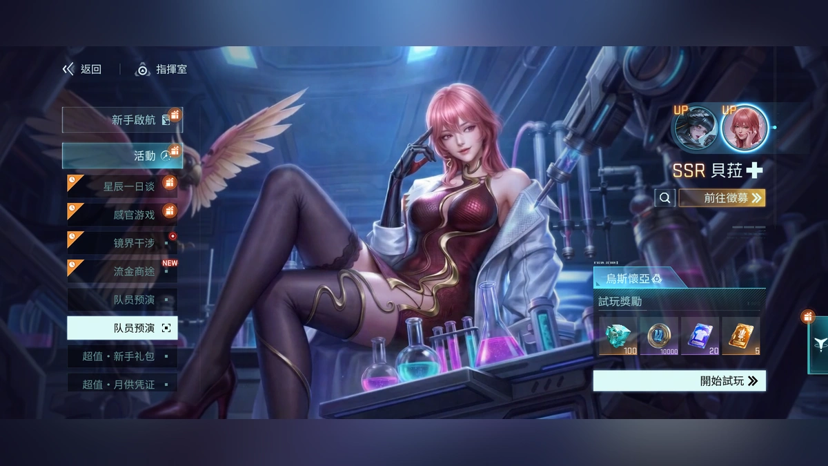 活動說明:活動期間,前往「黑盾徵募- 限時定向徵募」,徵募到SSR隊員時,必定獲得「貝菈」、「塔尼婭」兩個UP隊員其中之一。