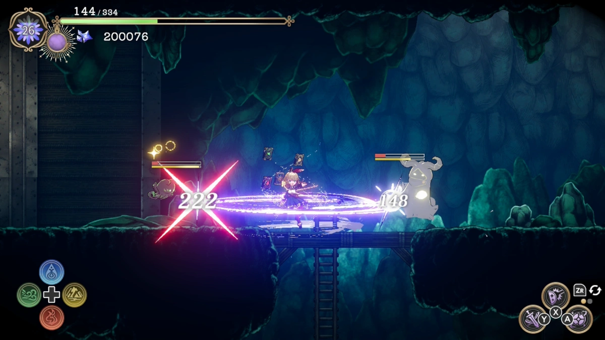 在戰鬥系統中,魔法屬性的運用相當重要,當魔法連續命中敵人時,將會發動強大的「屬性爆發」,對周圍敵人造成大量傷害。因此打出魔法連擊是攻略強敵的不二法門,尤其是面對強大的BOSS戰鬥等狀況。