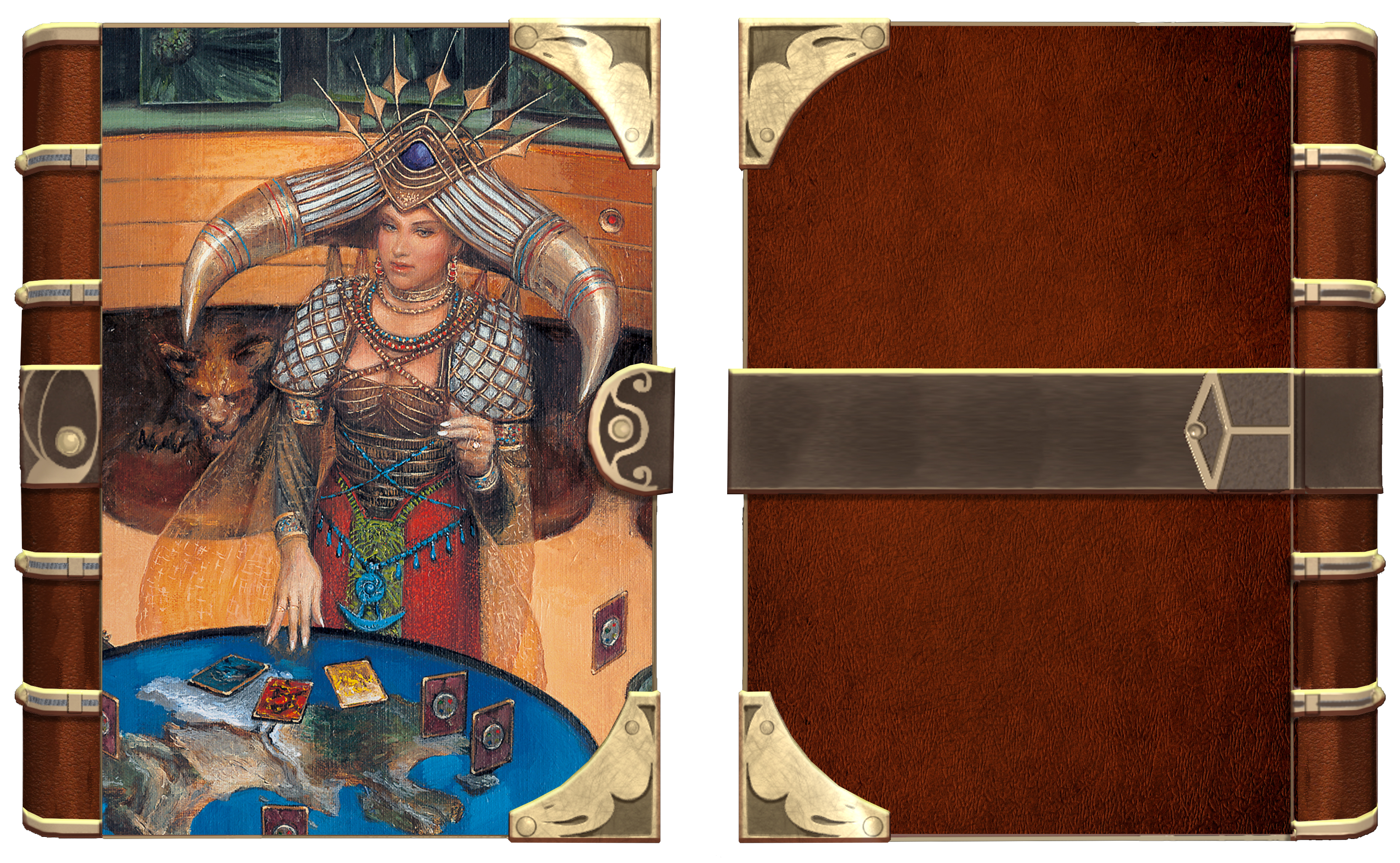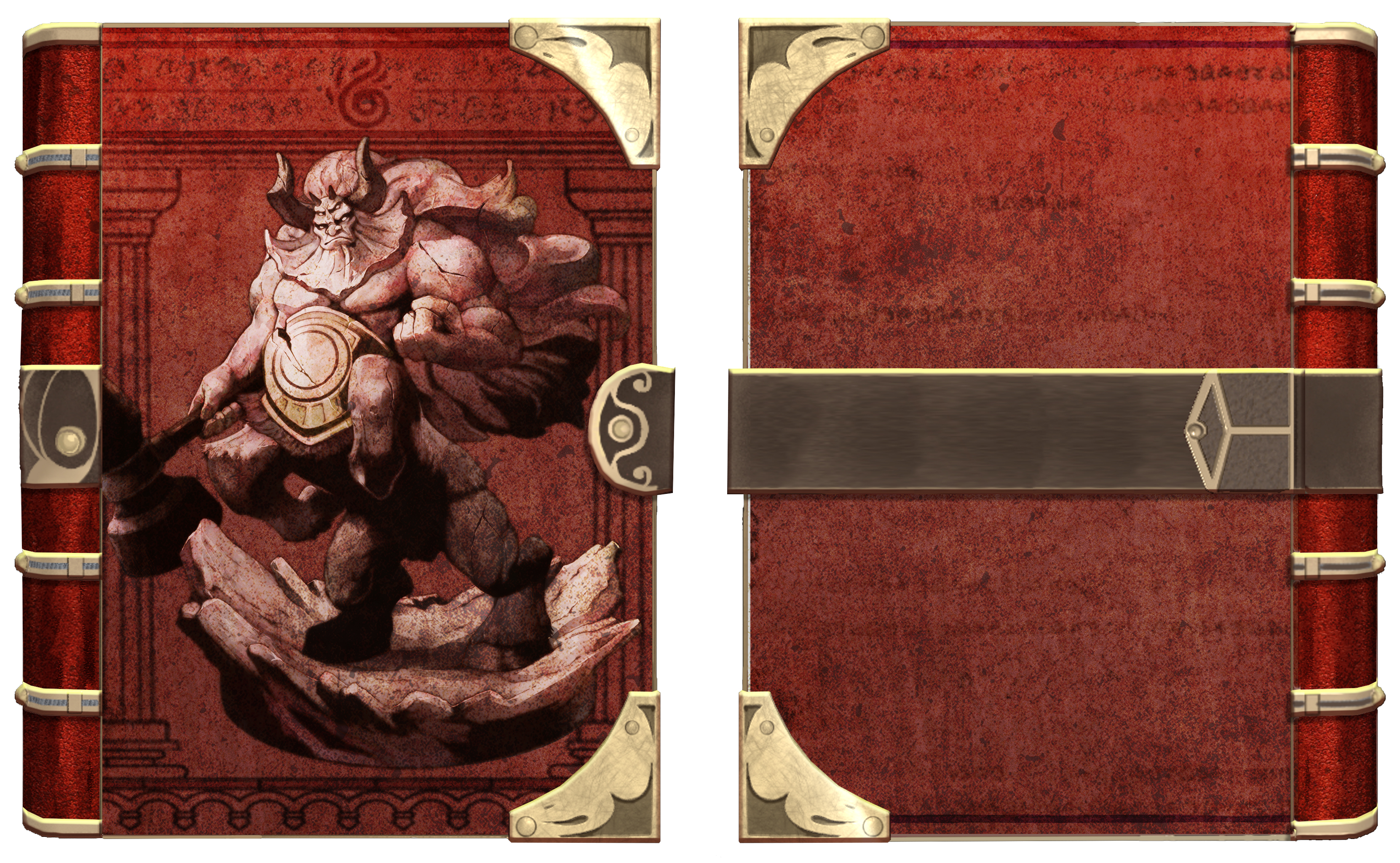 以專為本作全新繪製的火之神「比斯提亞」為設計的書本封面。可作為遊戲內構築「書本(牌組)」時的封面樣式使用。