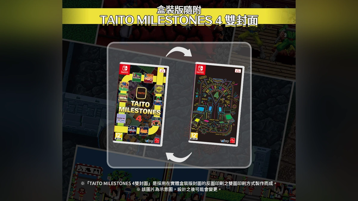 《TAITO MILESTONES 4》中文實體盒裝版隨附以街機主題特別設計而成的雙封面。購買實體盒裝版的玩家可以選擇自己喜歡的款式,裝飾《TAITO MILESTONES》中文實體盒裝版。