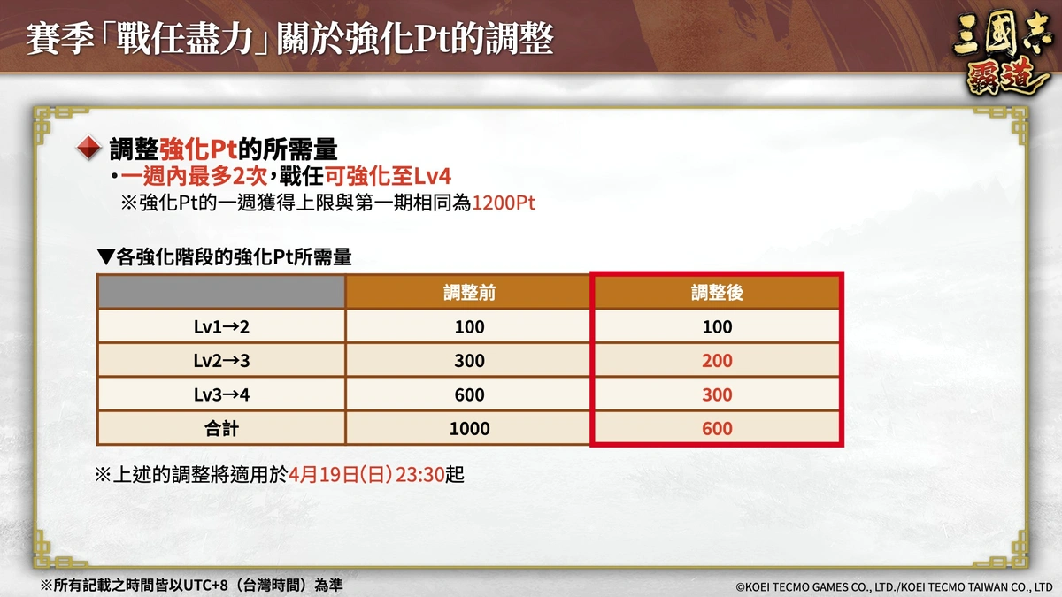 臺灣光榮特庫摩宣布,唯一由三國志系列之本家日本光榮特庫摩重磅推出MMO戰略模擬手機遊戲『三國志 霸道』,已於4月16日(四)完成4月更新,以下將介紹部分更新內容。