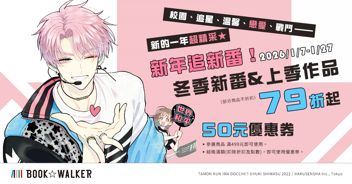 日本正版授權電子書平台 BOOK☆WALKER 推出「新年追新番!冬季新番&上季作品書展」,活動期間為 1 月 7 日至 1 月 27 日,參展作品優惠 79 折起,活動頁再領取 50 元優惠券(參展作品消費滿 499 元可使用)。本次書展集結多部話題原作,包含《Fate》系列外傳《Fate/strange Fake》漫畫版、描寫反差感青春戀愛的《相反的你和我》、引發追星族共鳴的《現在的是哪一個多聞!?》,以及聚焦人性與生存抉擇的《靠死亡遊戲混飯吃。》等。把握書展期間,一次補齊冬季新番與人氣原作,快樂開啟你的追番閱讀清單!