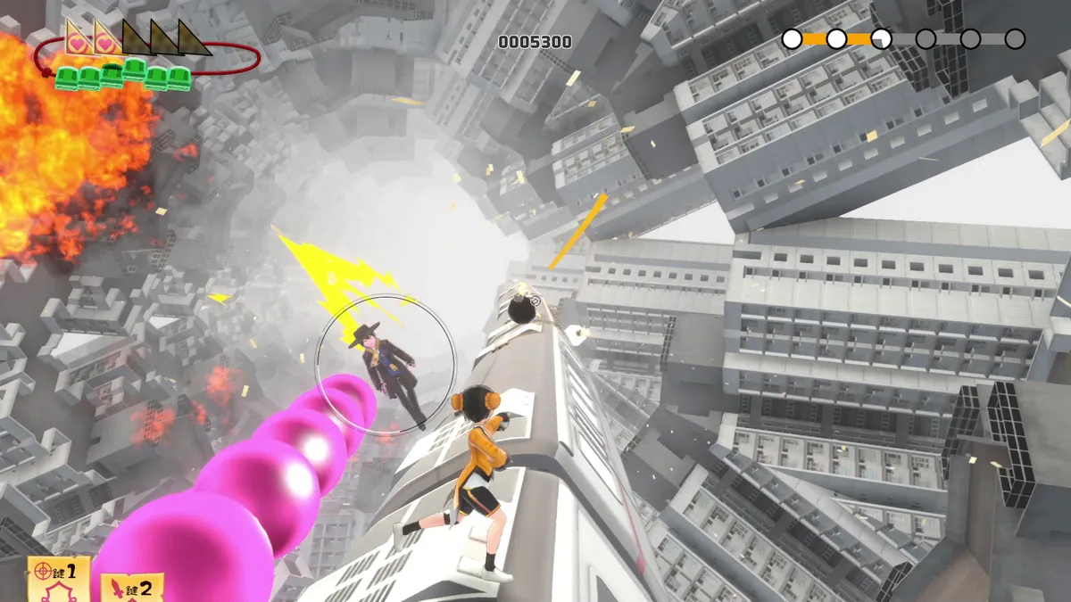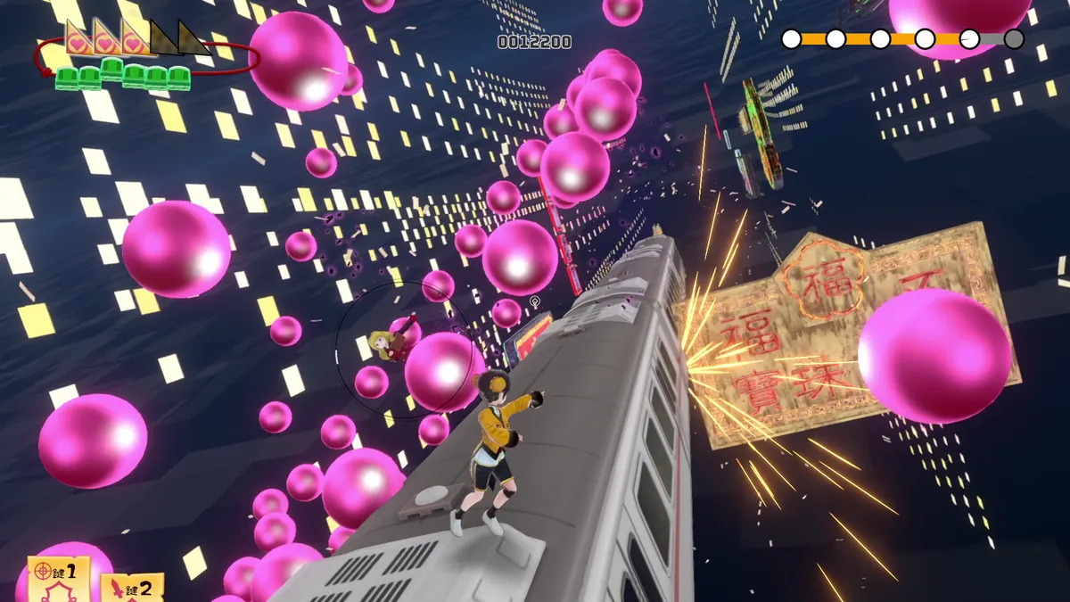 有些敵人會懸浮空中傾瀉彈幕,亦有敵人立於車身表面與她對峙。