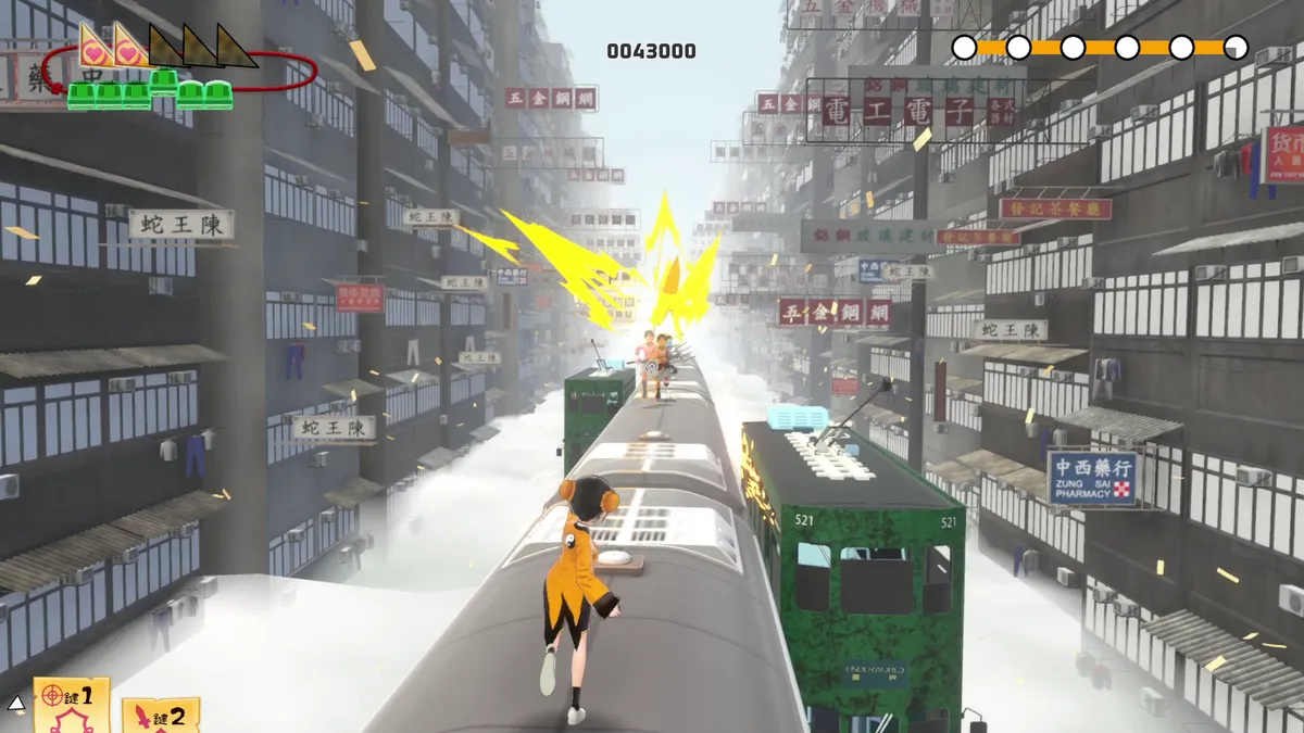 主角王頌桑需要跳出車廂,沿電車的車側及車頂表面奔跑,在密集彈幕與重重障礙間閃避周旋,同時向敵人擲射靈符。