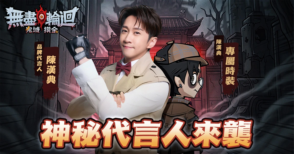 《無盡輪迴:鬼域摸金》特別邀請當紅藝人、人氣節目《百分之一相對論》主持人陳漢典擔任品牌代言人。陳漢典以其獨特幽默風格詮釋「鬼域探索者」角色,在詭譎氛圍中帶出輕鬆反差感,為遊戲注入更多話題記憶點。遊戲上線即送「陳漢典代言人限定時裝套裝」,讓玩家一開局就穿上代言人同款。