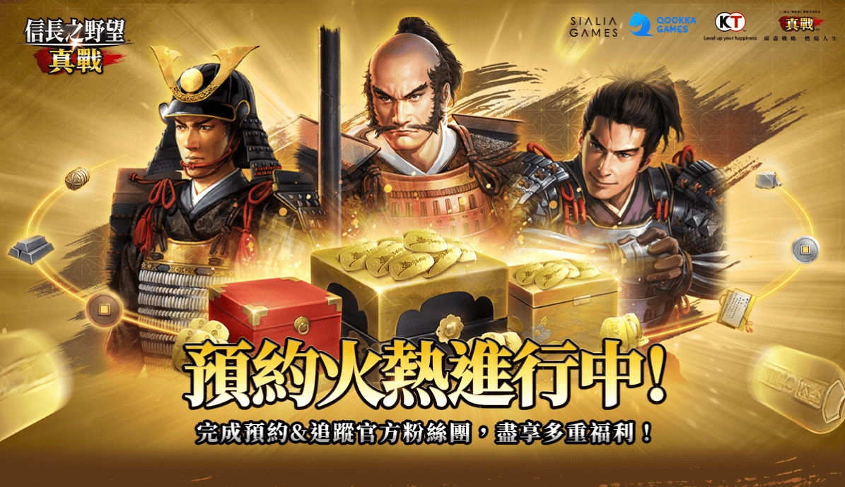 全新作品《信長之野望 真戰》由SialiaGames取得臺灣代理,10月9日正式宣佈開啟事前預約!玩家現可透過官方頁面或於App Store/Google Play雙平台完成預約,獲取專屬獎勵!當預約人數持續達成目標里程碑時,全服玩家更可解鎖「信長愛刀」以及首發限定永久主角外裝!