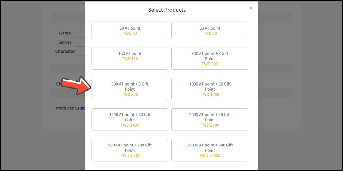 คลิกที่นี่ เพื่อไปยังหน้าการเติมเงิน ล็อกอินเข้าสู่บัญชีเกมของคุณ และเลือกเกมที่คุณต้องการเติมเงิน