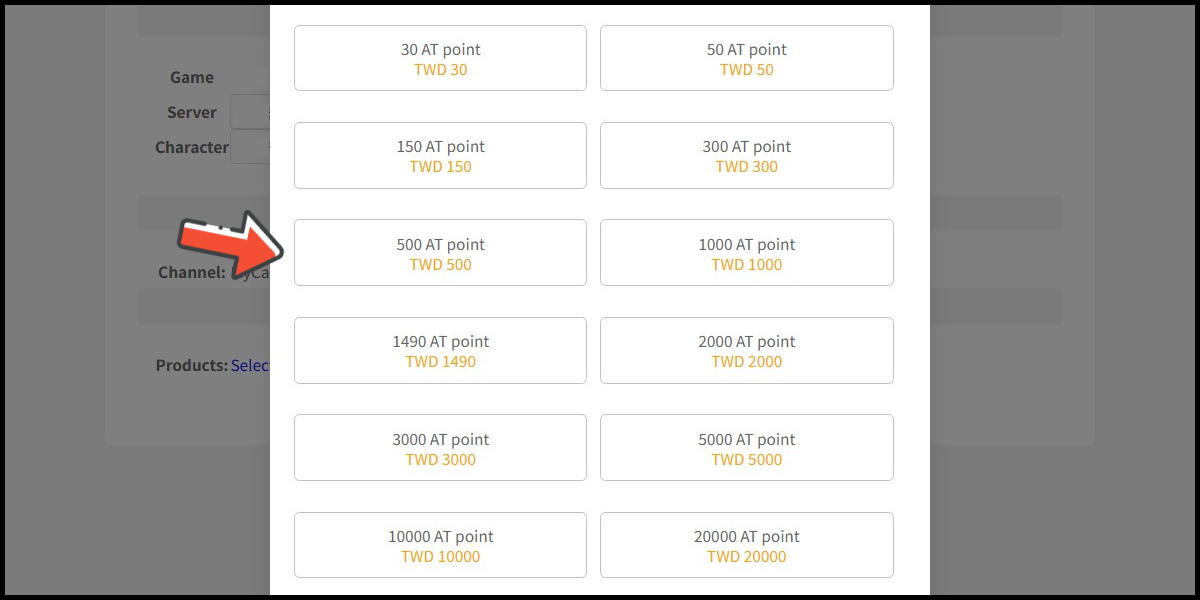 เลือกไอเทมที่คุณต้องการเติมเงิน