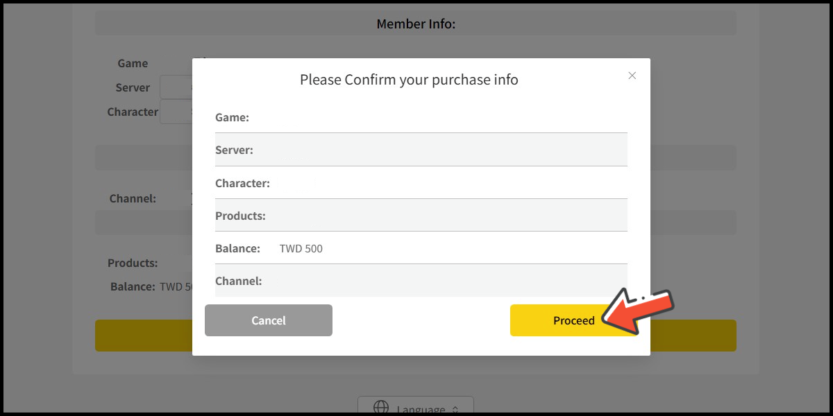 ยืนยันข้อมูลการเติมเงินของคุณ และคลิกปุ่มดำเนินการต่อ (Proceed)