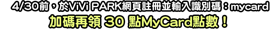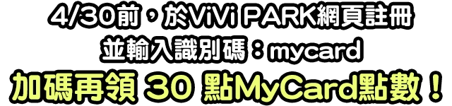 註冊時輸入識別碼 mycard,加碼領MyCard會員30點,詳細活動 請點此查看。